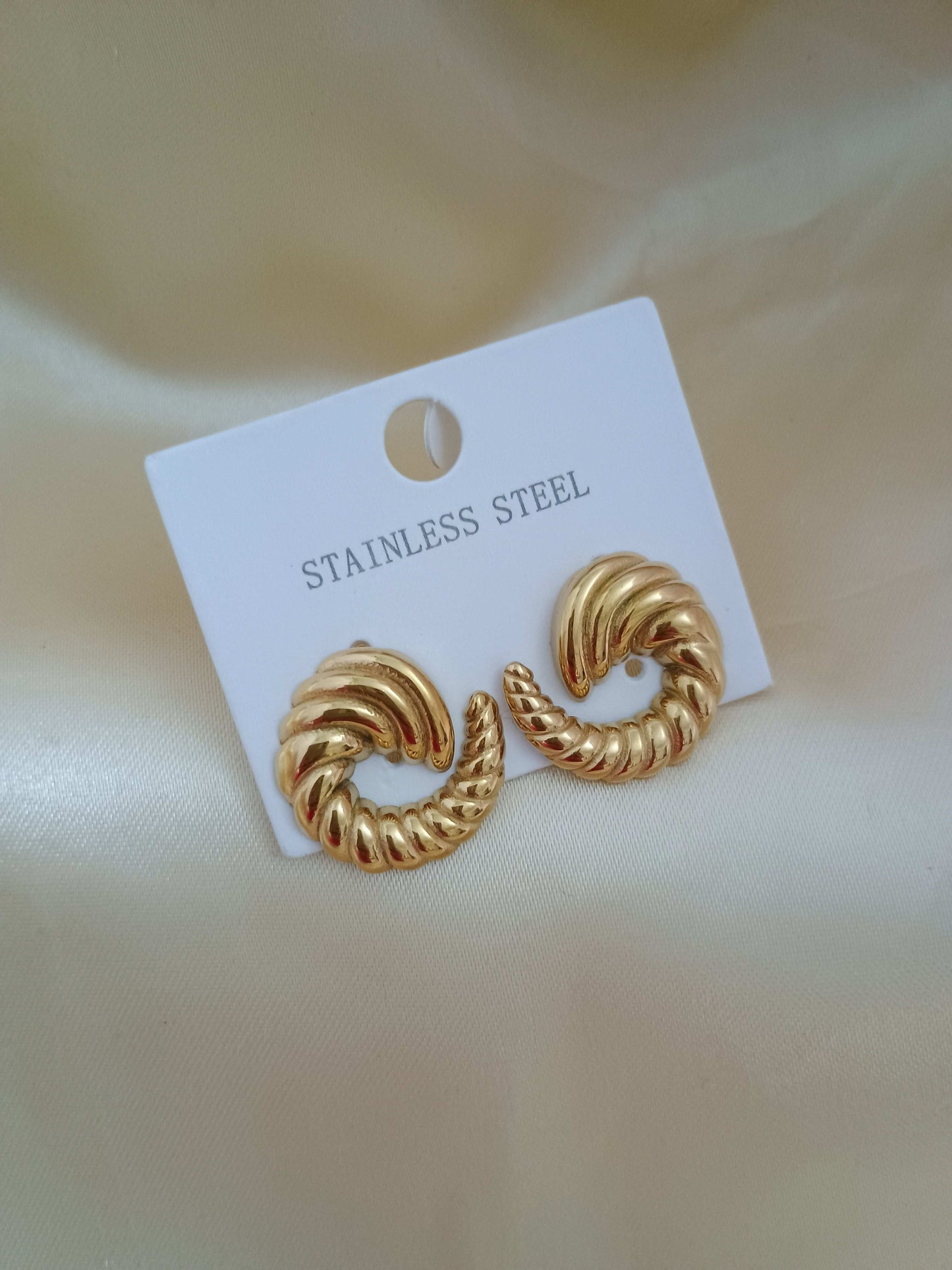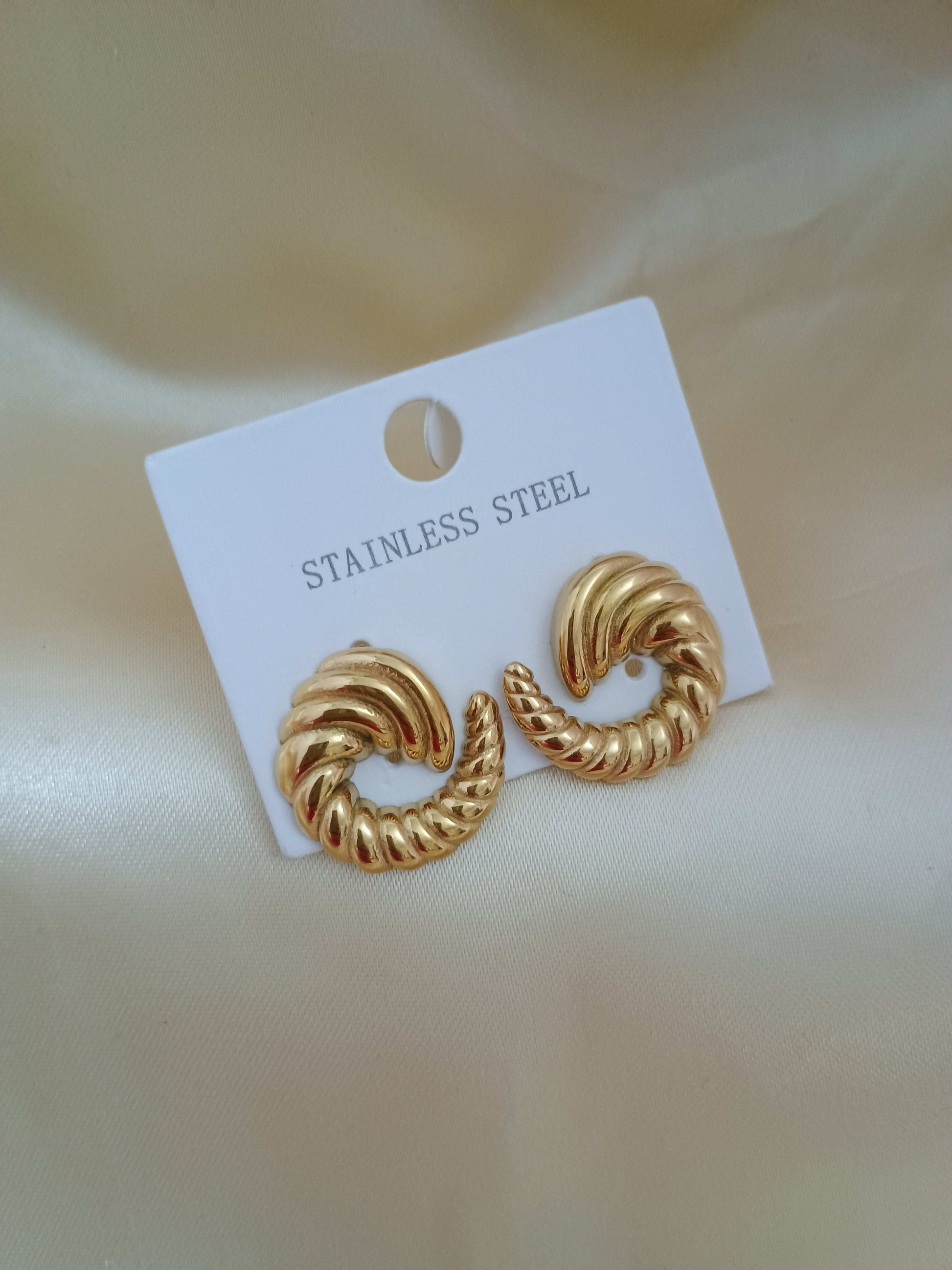 Antitarnish Golden Spiral Stud Earrings 18K Gold Plated
